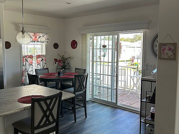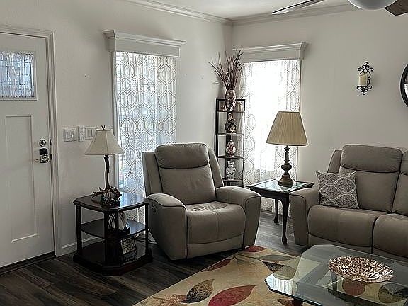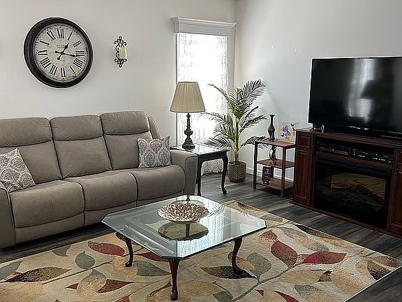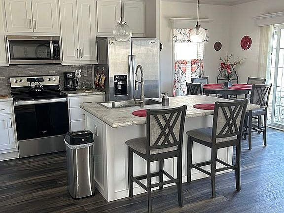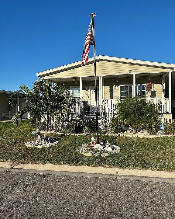Beautiful furnished 55 community with many amenities pools, gym, pickleball, fun bus going to beach, casinos, shopping, luncheons and more. New furniture, screened in furnished lanai, shed, carport for 3 cars, farmers porch. Monthly land fee includes taxes, sewer, water, trash and amenities.