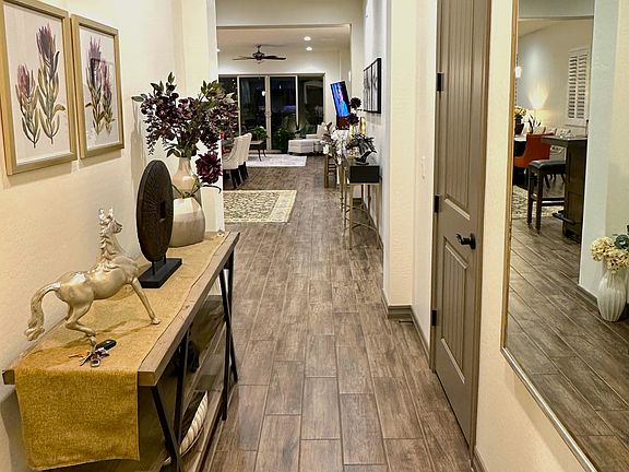 Ratnt Includes HOA and Land Scaping Service! This exquisite three-year transitional home is like new inside and out. It has all new appliances, including a brand-new washer, dryer, central water softener, water filtration system, and air conditioning unit. Ceiling fans have been added to every room, as well as the living area. The property features a Bar area with a built-in wine cooler, a three-car garage, an adjacent miniature golf course, and a landscaped backyard with shaded seating equipped with a fan. The flooring in all rooms is carpeted, while the living room and dining area feature wood-colored ceramic tiles. The home is available for move-in starting October 1st. Please refrain from visiting the property without scheduling an appointment. Ratnt Includes HOA and Land Scaping Service; for any additional information or inquiries, please get in touch with me. yearly from October 1/2024 to October 1/2025