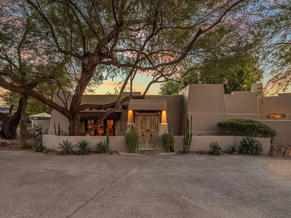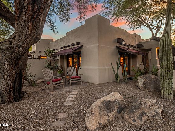 A rare blend of warmth, comfort, and elevated living awaits in this stunning resort-style property. Set on over half an acre, this 4220 sq ft home is thoughtfully designed inside and out to welcome you in and make you want to stay. Expansive windows showcase beautiful views from every room, while the spacious living and dining areas set the stage for effortless entertaining. Through the dining doors you'll find a lovely patio with a built-in fire pit. The kitchen was designed for a professional chef, featuring high-end appointments like a Thermador Professional gas range, large island, and plenty of room for both cooking and gathering. A lounge outside the kitchen offers a place for alfresco meals and a kitchen garden. Just off the kitchen is another spot to relax with a Kiva fireplace. The expansive primary suite is a cozy yet spacious retreat. The suite itself offers a sitting area with a beautiful fireplace, and a stylish spa-like bath with a large stand-alone shower and separate soaking bathtub. Oversized, custom-designed his and her walk-in closets complete the owners suite. A large second primary suite, currently used as an office, is just as impressive with its own spacious ensuite bath, exterior lounge area and pool view. Two additional bedrooms and a guest bath provide comfort for family and guests. The large laundry room boasts a Dutch door and private yard - a perfect retreat for pets. Outside, professionally designed landscaping frames a lagoon-style blue glass tile pool and an outdoor kitchen with top-of-the-line grill, refrigerator, beverage center, and TV. A rooftop deck with sunset views completes this remarkable home,beautifully blending luxury and comfort from top to bottom. Tucked in a highly desirable location, this property is just around the corner from popular restaurants, shops, and convenient amenities. Outdoor enthusiasts will love being minutes from the Phoenix Mountain Preserve and the Arizona Canal, offering endless opportunities for walking, running, and biking.