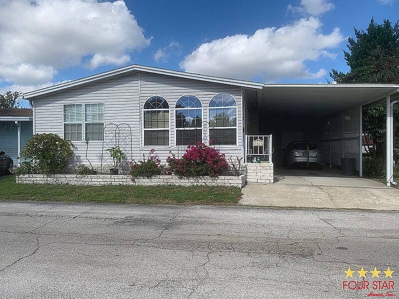 Two bed, two bath home with large open floor plan. Bright, airy kitchen with center island and lots of workspace. Energy efficient home; skylights in kitchen and bath provide lots of light, newer AC and silicon roof, solar fan on roof blows hot air out of attic. Sunny Florida room, great for plants and enjoying warm Florida winters. There is a solar night light. Laminate flooring and carpeted bedrooms. This great house has a very open area connecting the living room, dining room and kitchen. There is a large carport with ample parking, plus an over-sized utility room with washer, dryer hookups and lots of storage area. Walking distance to pool, Lake Catherine and picnic pavilion. Active community with social activities, heated pool, exercise room, library, fishing dock, boat ramp and free RV, boat storage. Close to medical, shopping and attractions.