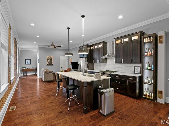 OPEN SUN 11.23 1-3pm. Welcome to 3523 Illinois, the cutest & hippest place in town. It's bound to impress! Steps from trendy Cherokee Antique Row & The Mud House! Upon entering, you'll ask yourself, "How is this gem in my budget? A great combination of a fresh, almost-new interior and the beloved historic brick shell. The open floor plan will allow you to enjoy everything at first glance: the tall ceilings, large windows, wood floors, exposed brick walls etc. The modern contemporary kitchen is the center of attention. Expresso 42"cabinets, SS appliances, island with seating, solid counters, white subway tile, exhaust fan, plenty of STORAGE and counter space for the chef! Opens to cozy living room with exposed brick walls. Floor plan is perfect for entertaining and including everyone! Bedroom number one faces the street & shows off it's exposed brick wall too. Updated hallway bath features a shower with floor to ceiling tile. Convenient main floor laundry. The spacious ensuite is tucked away in the rear! Relax in the gorgeous bathroom. An organized walk-in closet for all your things- no judging here. Lower level features a family room for lounging and LOTS of storage space. Outside you'll find a private back yard, manageable yard and 2 car carport. This place has everything you need. Front yard brought to you by Missouri friendly MSD/Botanical Garden grant (prepared for fall already)-it's beautiful in season. Come and embrace this beautiful place with a vibrant lifestyle. You found it, an updated, low maintenance home that won't break the bank...check!