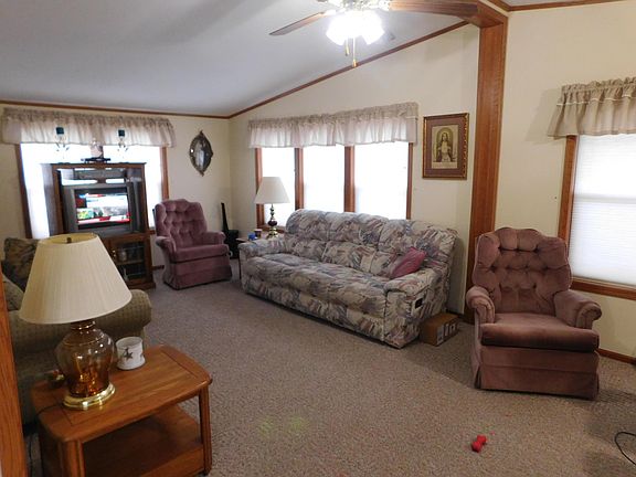 Well maintained 2002 built manufactured home. Roof and furnace replaced in 2016. Dining area with patio doors to deck, laundry room with cabinets, kitchen with all appliances included. Master suite and additional 2 bedrooms. 2 full bathrooms, skylight, vaulted ceilings and an attached 2 car garage with opener.
