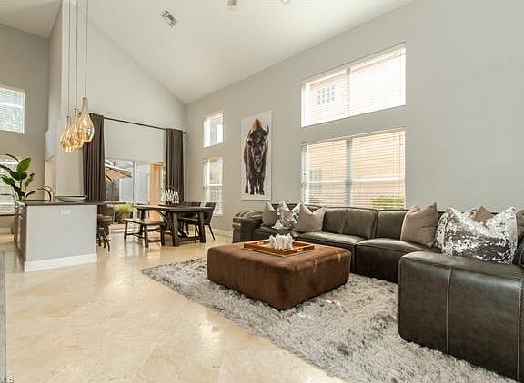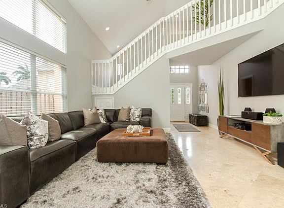New to the market! An upscale, coastal style living close to downtown Naples! This luxurious 4 bed 2.5 bath home is situated in the heart of Naples. With plenty of natural light to flow through the home, you will walk in to an open floor plan. This top of the line chef's kitchen has been completely remodeled with custom wood cabinets, and granite countertops. The main focus is the elegant seating area that leads to a screened in lanai and a pool. This beautifully designed home has been updated with exquisite kitchen and bathrooms custom cabinets, new granite counter tops, 18"diagonal travertine marble stone tile, solid hardwood flooring in the guest bedrooms and stainless steel appliances in a spacious open kitchen. The master bedroom suite is located on the 1st floor, all other bedrooms are on the 2nd floor. Other highlights include two car attached garage, parallel water distribution system, additional storage room under the stairs, office guest room and loft, give the home a spacious open feel. This home is ideally positioned to enjoy everything Naples has to offer - 7 min. to the beach and Olde Naples. All home furnishings have been provided by a designer (negotiable)