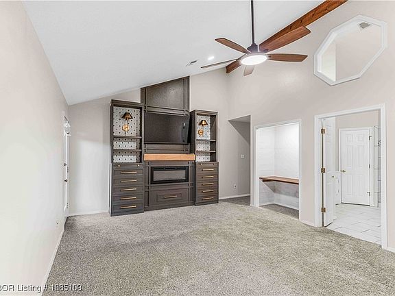 This home blends warmth, style, and function in a quiet Fianna Hills neighborhood. Inside, the living room features a vaulted ceiling with exposed beam, a striking floor-to-ceiling stone fireplace, and plenty of natural light leading out to the backyard. The kitchen has been thoughtfully updated with white cabinetry, butcher block countertops, stainless appliances, and a custom built-in dining bench with matching table that fits the space beautifully. The primary suite includes a spacious layout, custom built-ins around the TV area, and a large walk-in shower in the bathroom. Step outside and enjoy one of the standout features of this home: a true outdoor living space. The backyard offers an oversized concrete patio, two timber pergolas, and a stone outdoor fireplace a perfect setup for hosting, relaxing, and enjoying evenings at home. Move in ready with character throughout, and located close to schools, shopping, and everyday conveniences.