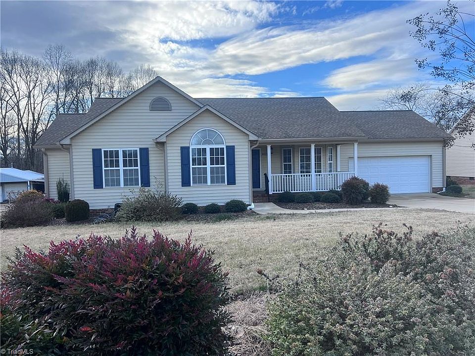 USDA Approved Location in Trinity's Gaddy Place. This move-in ready home has many updates including a brand new heatpump '26, new plumbing, and fresh paint throughout. You will love the primary bedroom that offers 2 large walk-in closets and a recently remodeled bathroom that offers a huge tile shower and double vanity. The home offers 3 bedrooms, 2 baths, breakfast nook and a formal dining room. The living has vaulted ceilings, gas fireplace and it leads to a full covered back porch that will be great to sit and relax. Great landscaping and you have a large backyard with an outbuilding that stays. All stainless steel appliances stay with the home. The kitchen has quartz countertops and a bay window that lets a lot of light into the kitchen. Only minutes away from I-85, Thomasville, Hopewell and Wheatmore School. Low Randolph County Taxes.