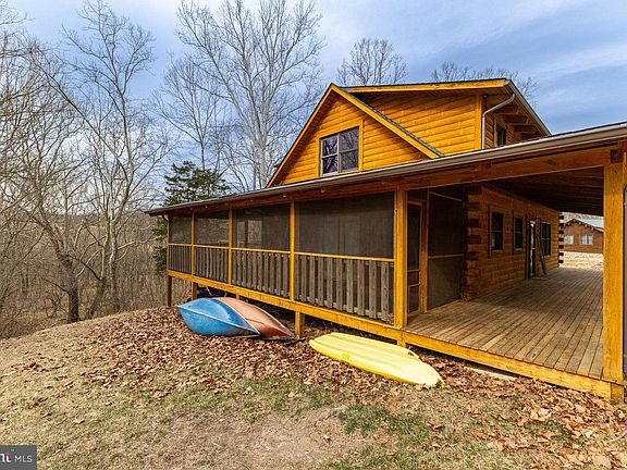 Charming Log Cabin on the Shenandoah River – A Nature Lover’s Dream! Escape to the tranquility of riverfront living with this stunning log cabin, perfectly situated on the Shenandoah River with over 300 feet of river frontage! Whether you're looking for a full-time residence or a peaceful vacation retreat, this home offers the best of both worlds. Built from a Dogwood Homes log cabin kit, this beautifully crafted home features solid log construction and knotty pine flooring throughout, exuding rustic charm and warmth. The stone-faced wood-burning fireplace in the living room is perfect for cozy nights, while the open-concept layout makes entertaining a breeze. The main level boasts a fully equipped kitchen, dining room connected to the spacious living room and a main level bedroom and full bathroom. The upstairs offers a loft area overlooking the lower level, two additional bedrooms, and another full bathroom. Enjoy summer breezes from the front covered porch, relax in the screened-in porch with direct access to the kitchen and dining room, or host gatherings on the oversized back deck. Nestled on the front elevated area of the lot above the river, this property offers the perfect place to enjoy nature with easy access to the water for floating, canoeing, kayaking, and endless outdoor fun. The front third of the lot is cleared, while the remaining area is beautifully wooded, featuring walking paths leading to a private riverside clearing—a true oasis for nature lovers. Don't miss this rare opportunity to own a slice of paradise on the Shenandoah River. Schedule your private tour today!