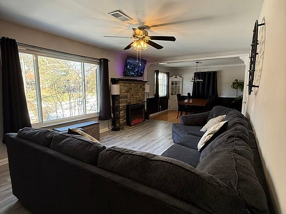 Large finished basementCozy brick homeDining areaFire pit areaAbundant wildlifeCovered patioGas stove
