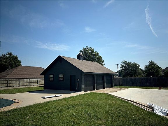 Modern Victorian remodeled inside and out in Moore! Home sits on 1/2 acre mol, and features 4 beds, 5 baths, and 3 car detached garage. Two primary suites, Great room features 20' ceilings and a large fireplace with old stained glass windows. Chandelier are from overseas. The main 3 car garage has been converted to a large game room/flex space with new clear view doors(currently fixed close). New exterior siding and paint, new concrete drive leading to the garage, in ground storm cellar, newer cedar fence and gates with metal poles, pool with large patio and newer patio cover. The interior remodel has been started and just needs your finishing touches.