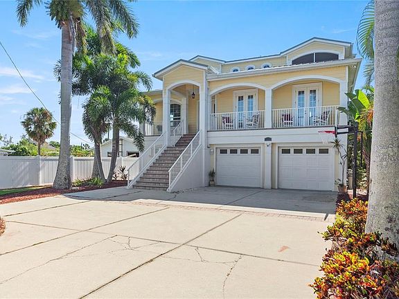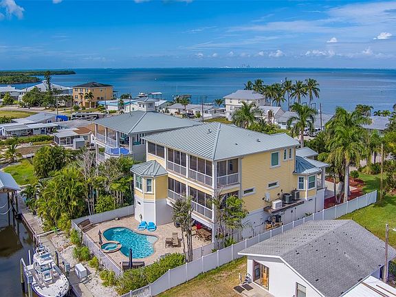 ABSOLUTELY STUNNING CUSTOM WATERFRONT POOL HOME WITH DIRECT TAMPA BAY ACCESS! This Key West–style masterpiece combines luxury, strength, and true Florida living. Built with poured concrete block from ground to roof and Hardy concrete siding, this home is virtually hurricane-proof—having sustained only minor damage through recent major storms. Offering 3,662 sq. ft. of elegant living space, this 4-bedroom, 4-bath home features a bonus room, dining/game area, and a family/great room—all designed to capture the breathtaking waterfront views from nearly every window. The gourmet kitchen is a chef’s dream, boasting custom 42” cabinets with crown molding, granite countertops, and a Viking stainless steel appliance package with a new cooktop, oven, and warming drawer—plus hidden spice drawers on each side of the stove. Freshly painted inside and out, the home showcases new 36” porcelain tile flooring for a sleek, modern look. The entire third floor is a private owner’s retreat complete with custom walk-in closets and a luxurious spa bath featuring dual vanities, a hydro spa tub, a massive walk-in shower, and all-new fixtures. Enjoy panoramic canal and bay views from multiple expansive balconies accessed through French doors—three of which have been newly screened with no-see-um mesh, allowing you to fully embrace the Florida lifestyle while enjoying sunsets without the bugs! These screened areas expand the home’s usable living space, creating the perfect spots for morning coffee or evening relaxation.The resurfaced pool and spa include a new pool pump and elevated equipment, while the 7,000 lb boat lift makes it easy to explore Tampa Bay’s best fishing waters—Tarpon, Snook, Redfish, Trout, and Grouper are all just minutes away! Two marinas with gas are within 15 minutes, and by boat, you’re only 20 minutes to the St. Pete Pier and 30 minutes to the Skyway Bridge. Additional highlights include new lighting fixtures and ceiling fans, coffered and tray ceilings, crown molding, hurricane-rated windows and doors, two newer AC units, two propane tankless water heaters, a 25KW Generac propane generator, and new exterior LED Bluetooth lighting. The oversized 8+ car garage is a dream for car enthusiasts, offering ample storage and workshop potential—plus, there are multiple car shows within 30–45 minutes almost every weekend! For added peace of mind, the home has been regularly serviced by a pest control company since purchase, and a professional mosquito prevention service has been in place for the past year. Outdoors, a regulation-size basketball goal adds a fun recreational touch—perfect for those who enjoy a quick game of hoops. Conveniently located just 10 minutes from Super Walmart, 35–45 minutes from two Costco locations, 45 minutes from Tampa International Airport, and 45 minutes to Sarasota, this home offers both peace and proximity. Sunsets are truly the best on Tampa Bay, and with no HOA or CDD fees, you can live freely while enjoying all the perks of a luxury waterfront lifestyle. With 5-star reviews on Airbnb and VRBO, this home has generated nearly $50,000 in annual income—making it a smart investment as well as a showstopping residence. This is more than a home—it’s a waterfront paradise offering unmatched beauty, function, and Florida luxury. Schedule your private showing today!