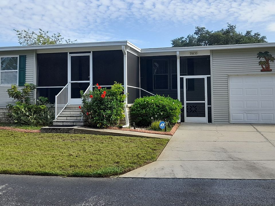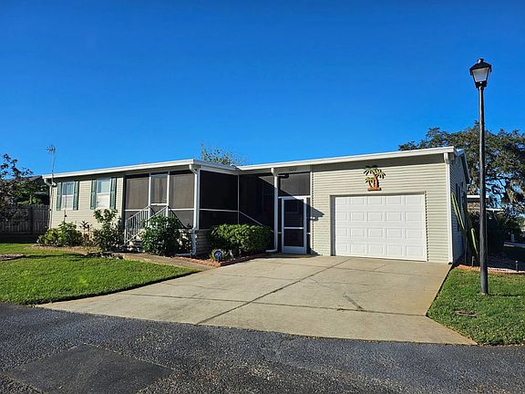 Welcome to this gorgeous 2005 Palm Harbor home priced under 100K and offers so much value for money. It is a split plan 3 Bedrooms, 2 Bathrooms, living/dining room open to kitchen. There is a separate laundry room, screened in front porch and a full-length garage with a 12' garage entry door and opener. The ROOF IS NEW installed Jan 2025, AC 8 years old, Stainless Steel Stove, Fridge and Dishwasher are all under 6 years old. This home is move-in ready and it's located in this resort style 18-hole golf course community and includes access to all resort lifestyle amenities. For those snowbirds looking for the ideal home. This home comes with an alarm system which can be linked remotely giving you access to cameras in the home for that extra peace of mind and security when you are not there.Southport Springs Golf and Country Club (SPS) is a PREMIER 55+ community with superb amenities including a beautiful Club House with ballroom/stage for banquets and dances, fitness center, card room, a restaurant/tavern with a fully stocked bar. Activities include golf at the 18-hole golf course, tennis, pickle ball, horseshoes, bocce, shuffleboard, power walking, bingo, potlucks, pool tables, and line dancing. You might prefer a dip in the heated swimming pool or relax in the two hot tubs. SPS has over 500 homes and is pet-friendly with a place to park your RV or trailer. SPS is less than two miles from shopping, medical facilities, dining, and houses of worship. Only 45 minutes from downtown Tampa and the Tampa International Airport. There are many nearby attractions like Busch Gardens, many beaches along the Gulf of Mexico. Go see the Tampa Bay Buccaneers, TB Lightning, TB Rays, Orlando Magic, as well as spring training with the New York Yankees. Family fun is also readily available. The excitement of Orlando's theme parks includes Walt Disney World, Epcot Center, Universal Studios, and SeaWorld which are just 60 miles away. There is truly something for everyone in this friendly and wonderfully maintained Florida community.