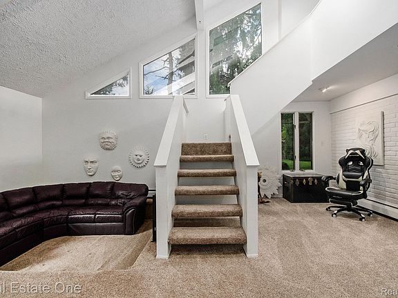 THIS ONE-OF-A-KIND HOME BLENDS ARCHITECTURAL CREATIVITY WITH EVERYDAY COMFORT! OFFERING A LARGE GREAT ROOM FOR ENTERTAINING ENCOMPASSING A SUNKEN MEDIA AREA WITH A FIREPLACE, OPEN AREA FOR DINING OR ADDITIONAL SEATING, 3 NICELY SIZED BEDROOMS, OPEN KITCHEN WITH STAINLESS APPLIANCES AND AN ALL SEASONS ROOM THAT OPENS TO A PARK-LIKE BACKYARD (.75 ACRES) WITH A BRICK PAVED COVERED PATIO (Belle Isle Awning). DRENCHED IN NATURAL LIGHT FROM THE SKYLIGHTS THROUGHOUT THE HOME AND THE WALLS OF WINDOWS IN THE SUN-ROOM, THIS HOME IS AN ENTERTAINERS DREAM AND A PRIVATE RETREAT. THE UNFINISHED BONUS ROOM ADJACENT TO THE LOFT ABOVE THE EXPANSIVE GREAT ROOM IS IDEAL FOR STORAGE OR YOUR FUTURE EXPANSION. THIS TRULY IS A 'MUST SEE' HOME AS ARCHITECTURAL CHARACTER SHINES IN EVERY CORNER!