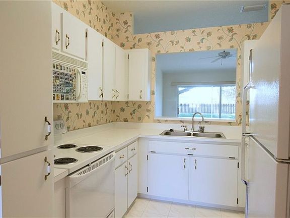 This home has been immaculately and lovingly cared for. Walk into a bright foyer open to an eat in kitchen. There are plenty of cabinets for storage and a pantry to boot. A formal dining room to the right is perfect for your dining room table. A nicely sized 2nd bedroom sits at the front of the house as well as the 2nd bathroom. And the washer and dry stay! The living room is bright and open with sliding glass doors that lead to a screened in porch. Enjoy your morning coffee with a view of the trees. The large master bedroom is at the back of the house and has upgraded window shutters. It is situated with a walk in closet and a dual sink in the bathroom. In the garage you will find a water softener that stays with the home, a recently updated HVAC system and hot water heater. This is truly a maintenance free home.