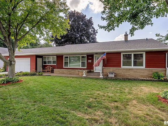 Move-in ready ranch in a convenient Rock Island location, set on nearly an acre with a mix of level and gently sloping yard. This 3-bedroom, 2-bath home offers 1,850 finished sq ft, an attached garage, guest parking, and tasteful updates throughout. The main level features oak hardwood floors, a remodeled kitchen with breakfast bar, updated appliances (2020), formal dining, and a cozy living room with upgraded fireplace. Enjoy recessed lighting, built-in bar, wet bar, and a partially finished basement remodeled in 2023. Numerous improvements include: roof, front and patio doors (2015), garage updates, bathroom remodel, new A/C (2020), furnace (2023), hot water heater (2022), electrical upgrade, and new water/sewer lateral line (2024). Outdoor highlights include a patio, shed, and outdoor speaker system. Steel siding, radon mitigation system, and egress windows add comfort and peace of mind. Convenient to shopping, schools, and main roads—ready for you to move right in! (All measurements are approximate and should be verified by Buyer/Agent.)