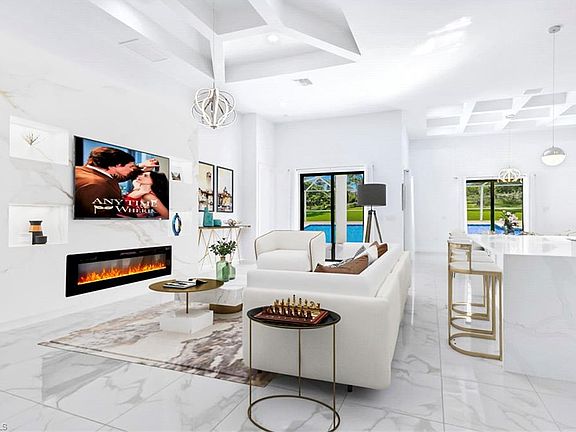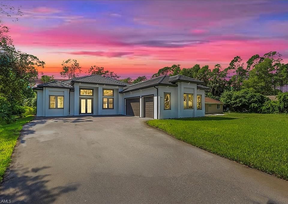 Discover the perfect blend of modern luxury and Florida tranquility at 3524 29th Ave SW, Naples, FL. This brand-new 2024 custom estate sits on 1.14 acres in Golden Gate Estates and offers over 3,000 square feet of refined living space with 4 bedrooms, 3 bathrooms, and a spacious den. Step inside and be welcomed by 13-foot tray ceilings, oversized porcelain tile floors, and an airy open layout designed for elegance and everyday comfort. The living area features recessed lighting, a statement chandelier, and a sleek electric fireplace, creating the perfect atmosphere for both relaxation and entertaining. The gourmet kitchen is the centerpiece of the home, showcasing waterfall quartz countertops, a massive island, 48-inch custom cabinets, a walk-in pantry, and brand-new LG ThinQ stainless steel appliances—blending beauty with functionality. Retreat to the luxurious primary suite featuring his-and-hers walk-in closets, dual vanities, a freestanding Mokleba soaking tub, and a custom porcelain-tiled rain shower framed in crystal-clear glass. Each additional bedroom includes its own walk-in closet, offering comfort and privacy for every member of the home. Additional highlights include a 3-car garage, impact-resistant windows and doors, brand-new light fixtures, flood lights, sprinkler system, and room for a future pool. Located just minutes from Paradise Coast Sports Complex, the new Great Wolf Lodge, Amazon, ULINE, and with direct I-75 access to Miami, this home offers the ultimate combination of space, style, and convenience.