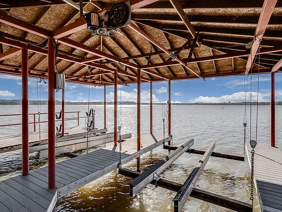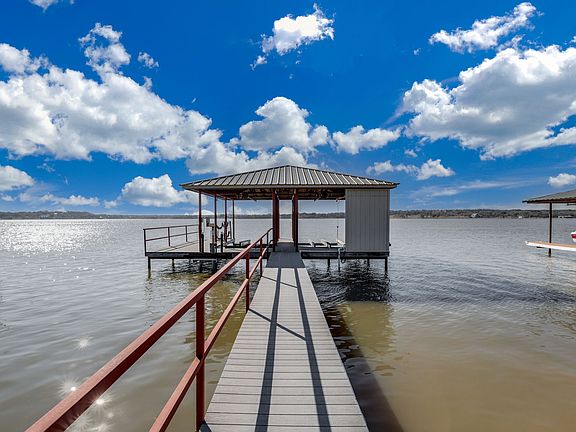 Luxury Lakefront Living on Lake Granbury’s Main Body! Experience one-story elegance in this 3,698 sq ft waterfront retreat designed for comfort and style. Featuring 4 spacious bedrooms, 3 full baths, a private office, and an oversized 3-car garage. This home blends luxury with everyday convenience. The gourmet kitchen boasts upgraded quartz countertops, KitchenAid appliances, pot filler at gas cooktop and walk in pantry. This layout flows seamlessly into open living and dining spaces. A four-seasons room at the back offers panoramic lake views year-round. The primary suite is a true sanctuary with black out electric shades, a spa-inspired bath, soaker tub, walk-in shower, and oversized closet with built-in cabinetry. All bedrooms are generously sized with ample closet space; this home will surprise you with all the storage options! Outdoors, enjoy an entertainer’s dream: outdoor kitchen, rebuilt seawall, and private dock with lifts for boats and jet skis. Lake-fed irrigation keeps landscaping lush, while a majestic oak tree with sweeping branches provides the perfect spot for a swing and lots of shade. Additional highlights include all hard floors, no carpet, fancy glass doorknobs throughout, spray foam insulation, water filtration and reverse osmosis at the sink, and two tankless water heaters for efficiency. Located just minutes from Granbury’s historic square for dining and shopping, and only an hour from DFW. This property offers the perfect blend of luxury lakefront living and convenience.