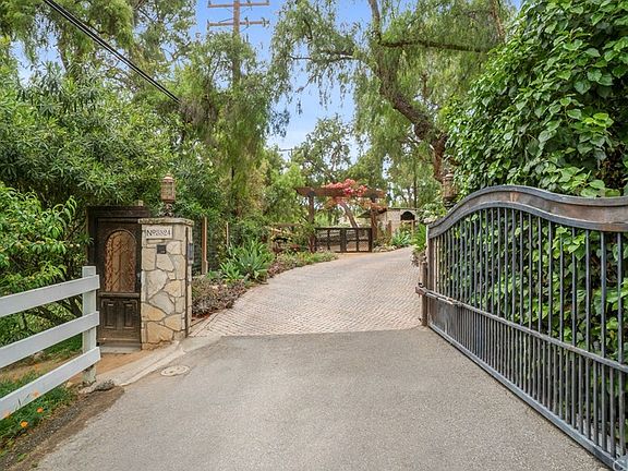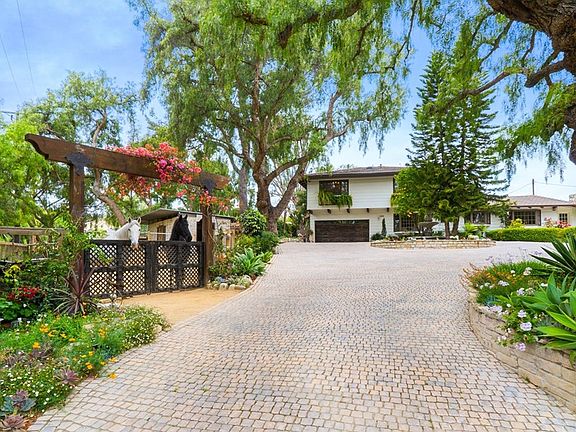 A gate & cobblestone circular driveway will lead you to an elegant ranch style home w/plenty of guest parking, pool, room for horses & children's play yard. Feel wrapped in nature the moment you step onto the private grounds. The outside of the home has mature landscaping, fountains, coastal breezes. The amenity-stocked kitchen has pro-appliances: Viking oven, range & warming oven, Sub-Zero refrig/freezer, pull out pantry, & pull out drawers. There is a large master bedroom w/private hot tub just outside in a secluded garden. French doors ring the entire back of the house which lead to a covered patio offering dining & entertaining for an indoor/outdoor feel. Downstairs office has fireplace w/view out to pool & backyard. There are 3 upstairs bedrooms - one w/fun children's loft. Spacious horse area is on a large, well-draining flat lot w/direct horse trail access, vermin-proof hay storage, & wash rack w/hot & cold water delivered over boom sprayer. The horse paddock area is designed to encourage movement. Horse amenities include a Nelson waterer (with available consumption meter), 2 stalls (one w/Comfort Stall flooring & other w/continuous rubber seam flooring), fly spray system & custom outdoor sink w/hot & cold water. The entire horse area is designed to be easy to clean & maintain & has plenty of shade. A unique feature is the 'porch' within the paddock. It provides a place to sit & visit with your horses & is the perfect height for easy mounting before you hit the trails.