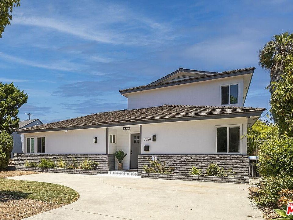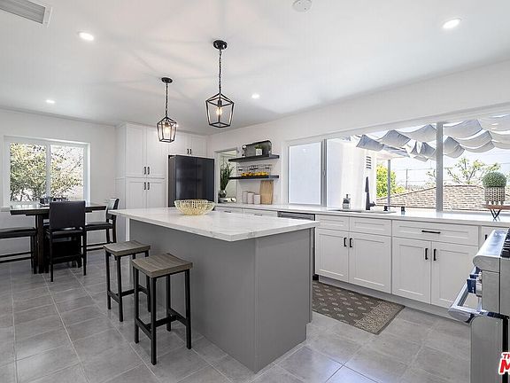 This spacious house is situated in the highly sought-after and central Palms neighborhood offering breathtaking views all the way to the iconic Hollywood sign. Meticulously remodeled while retaining its original charm, this home is an entertainers dream while still functional for family life. Two bedrooms and 1.5 baths on the first floor, with two en suite bedrooms with upstairs, including the primary. The chef's kitchen, has quartz countertops, a Calacatta quartz island, high-end appliances including a Thermador range and a Bosch Dishwasher. The kitchen has plenty of storage space, with cabinets and a tall pantry next to the new Samsung fridge. A huge window above the sink overlooks the private patio with custom shades, and an in-ground spa.