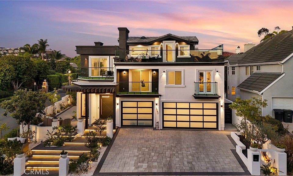 Welcome to 35242 Vista de Todo — an extraordinary, completely rebuilt coastal residence situated on a private cul-de-sac of just ten homes in coveted Capistrano Beach. Blending refined craftsmanship with modern sophistication, this home showcases custom teak wood flooring, designer finishes, and an open-concept layout ideal for entertaining. A dramatic 5-foot-wide by 8-foot metal pivot front door sets the tone for the impressive interior, leading to a formal dining room and a spacious family room with a custom fireplace. The gourmet kitchen is a chef’s dream, featuring marble countertops, Thermador stainless steel appliances, and a wine refrigerator. The main level offers two bedrooms, including a guest suite with an ensuite bathroom and walk-in shower, along with a full guest bath, powder room, laundry room, and direct access to the three-car garage. The backyard is designed for both relaxation and recreation, complete with a putting green and outdoor fireplace. Upstairs, two additional bedroom suites each offer spa-inspired bathrooms and walk-in closets, complemented by a loft, full bath, and a second laundry room. The third level is devoted to the luxurious primary suite, featuring a walk-in closet, office nook, and a private deck where you can unwind while taking in sweeping ocean and sunset views. In addition, the home includes approximately 1,000 square feet of attic storage, a 400-amp electrical panel, and EV charging capability in the three-car garage. Just minutes from Dana Point Harbor and the San Clemente Pier, this stunning home offers the perfect blend of coastal serenity and contemporary elegance — a true embodiment of Southern California living at its finest.