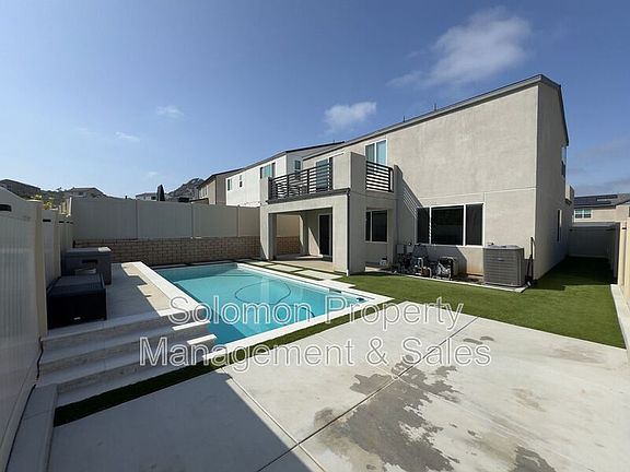 Solomon Property Management & Sales is pleased to be offering this 4 Bedroom 3 bath home located in the desirable Citro Community part of the Horse Creek Ridge community of Fallbrook! In this 3-year-old home the kitchen boasts a large island, custom lighting,and a stainless steel appliance suite that includes a gas range, microwave, dishwasher, and Refrigerator. There is a full bath and bedroom conveniently located downstairs, along with a space for an office. The other 3 bedrooms, Loft and and remaining bathrooms are all upstairs. The primary suite has a MASSIVE walk in shower and large balcony that overlooks the pool. The home does have a solar system to help offset the cost of electricity! The two-car attached garage is oversized with drop down storage racks and an EV Charger already included. The fully fenced private yard has its own custom private pool for summertime enjoyment. There are great community amenities such as pools, spas, clubhouse, and parks within walking distance. Electricity,Gas,Water/Sewer,Trash, Cable/Internet, and Renters Insurance are the Tenant's responsibility. Housing Provider will pay HOA dues. $50 application fee per applicant over the age of 18 $4,600 Rent Per Month $4,600 Security Deposit 12 Month Lease term Pets will be considered on a case-by-case basis. Additional monthly pet rent will be required. No Smoking Excellent Credit based on Experian scoring model & Excellent Rental history are required Please contact us through any of our online advertising and fill out the pre-screening questionnaire that will be emailed/texted to you. Once complete, you will receive information on how to schedule a showing. Listed By Solomon Property Management & Sales DRE# 02250956 Solomon Property Management & Sales and their agents will not be held responsible for errors or omissions. All rental information is subject to change without notice. Amenities: Attached 2 Car Garage, Private Pool, EV Charger