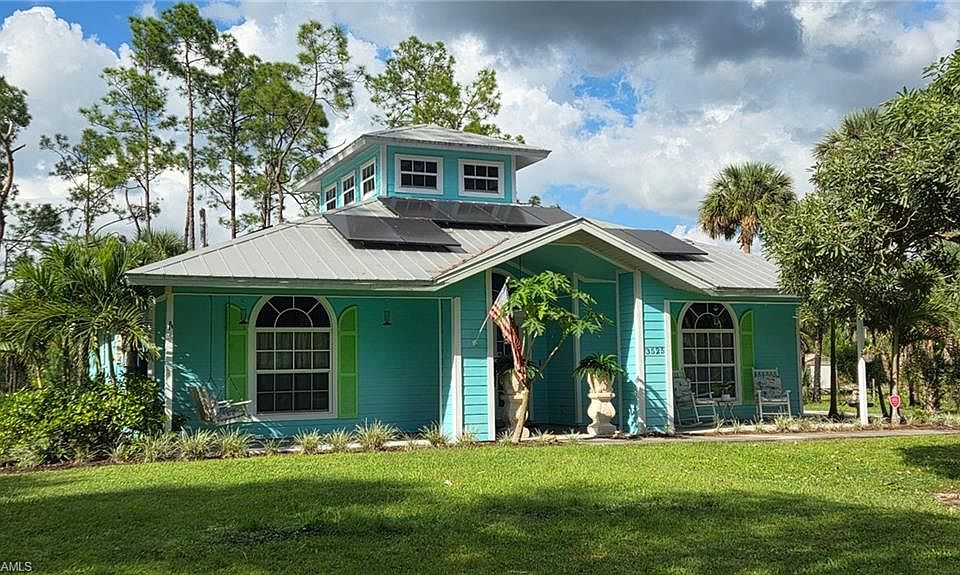 Below appraised value! This inviting Florida-style home with its front open Southern porch offers the perfect blend of comfort, style, and sustainability. With 3 spacious bedrooms and 2 updated baths, the open floorplan creates a seamless flow from room to room—ideal for both relaxing and entertaining. The fully remodeled kitchen is a showstopper, featuring sleek finishes, modern appliances, and ample space for culinary creativity. Thanks to the homes 10 kilowatt solar panel system with inverter conversion and generator capability, you'll enjoy impressively low electric bills, making this residence as efficient as it is elegant along with giving you peace of mine during those Florida storms. Another saving is that this structure does not require flood insurance! Set on a generous 2.73-acre lot, the property opens up a world of possibilities—from organic gardening and equestrian use to building a guest house, planting a fruit tree oasis, or designing a custom pool and outdoor retreat. Whether you're looking to cultivate a sustainable lifestyle or create a private haven for entertaining and relaxation, this land offers the freedom to bring your vision to life. Located just minutes from Naples’ beautiful beaches, upscale shopping, and fine dining, this home combines eco-conscious living with the best of Florida’s coastal charm.