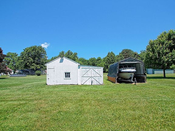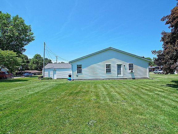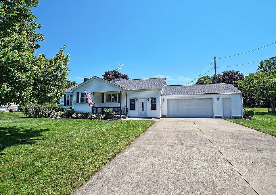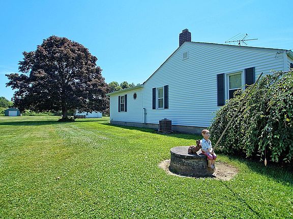 ranch style home, Three bedroom, two and half baths Large living-room with stone fireplace. Mantle came form an old barn in Perry "the onion House" Marble hearth. Master bedroom and full bath with oversized tub/shower. One piece unit. Two more bedrooms and office or fourth bedroom with walnut and oak flooring. Full basement partially finished, and crawl space with 5 block construction and concrete flooring, Perfect storage space. Large kitchen with Hickory cabinets and many custom features throughout. Front foyer is large and easy access to Half bath and full laundry on main floor. Home offers many features for wheelchair/walker accessibility. Ramp in entry way to main first floor living space.
