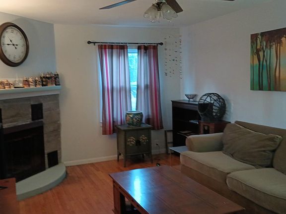 Sizeable backyardEat in kitchenWood burning fireplace