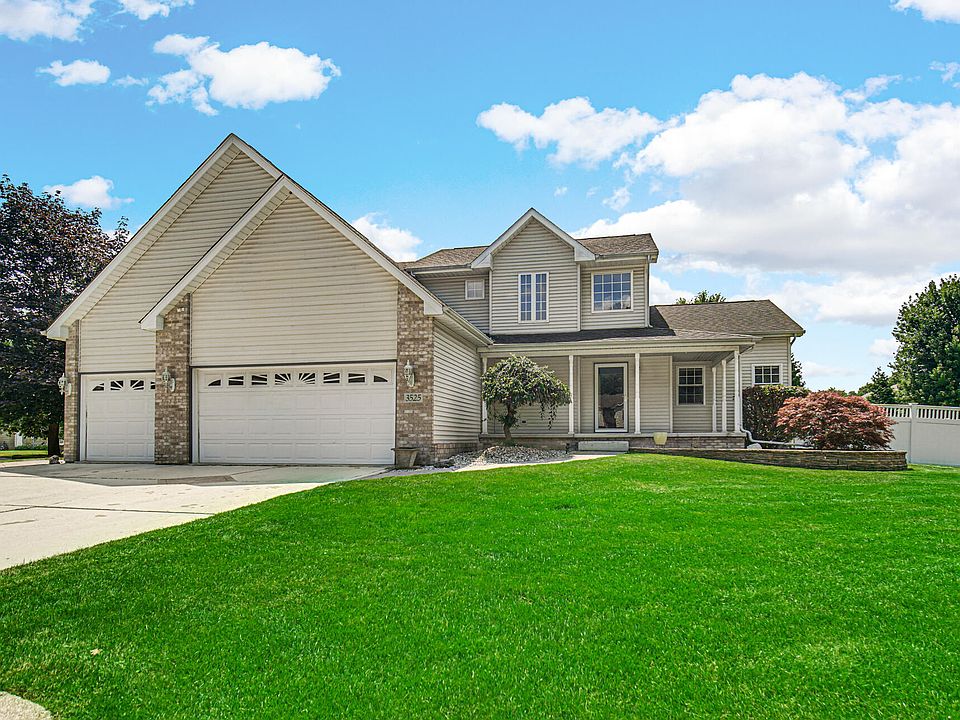 Beautiful home on a 0.25 acre corner lot in the Golfview Estates neighborhood! Enjoy your morning coffee on the covered front porch before stepping into the foyer/entryway with ceramic tile + high ceilings; the adjacent living room with gas log fireplace and vaulted cathedral ceiling makes for the perfect spot to cozy up & get lost in a good book! Your adorable eat-in kitchen has all stainless appliances, oak cabinets and ample counter & cabinet space with an adjoining dining room/breakfast nook with cherry hardwood that walks out the deck/backyard! A cute half-bath, mudroom off your (HEATED) 3-car garage & master bedroom with stunning full bath en suite (ceramic tile, jetted tub, tray ceiling, 9x6 walk-in closet) round out the main level, while the upstairs features two spacious bedrooms and a full guest bath! There's plenty of space for entertaining in the finished basement, boasting a 25x15 rec room with a second (gas log) fireplace + custom ceramic tile flooring, 4th bedroom with walk-in closet (could serve as an office), large utility/laundry room (Whirlpool washer + dryer stay) & unfinished storage area with rough-in for an additional bathroom! You'll LOVE hosting friends for cookouts this summer in your private backyard retreat with 16x12 stone patio, 22x20 deck, HOT TUB, pool (new, 2022) & vinyl fence, as well as storage shed wired with electricity! The interior was freshly painted & new carpeting installed throughout in 2023. STELLAR location on a quiet block, just down the street from a playground for the kiddos. Duneland schools, NO HOA with easy access to the Indiana Dunes lakeshore, Dune Park South Shore train station, toll road and I-80/94 make your commute to Chicago a breeze! Schedule your showing today!
