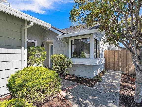 Gorgeous one-level Bayfarm detached home on a sunny corner lot has been thoughtfully updated inside and out, offering both modern and timeless style. A new roof, fresh exterior paint set the stage, while vaulted ceilings and abundant natural light create an open, airy feel. The open living/dining room is anchored by a cozy fireplace and slider that extends the living space outdoors, where a low-maintenance backyard and side yard provide room to relax, garden, or entertain. The kitchen shines with quartz countertops, newer stainless steel appliances, soft-close cabinetry, and a breakfast bar. The primary suite is a private retreat at the rear of the home, complete with soaring ceilings, dual custom closets, and direct access to the peaceful yard, while the second bedroom offers flexibility for guests.. Bathrooms have been stylishly refreshed w/new modern vanities, lighting, and fixtures. Engineered wood floors flow throughout, central A/C ensures year-round comfort, and the two-car garage boasts epoxy-coated floors, floating storage cabinets, and washer and dryer included.Set in a tranquil neighborhood with award-winning schools, nearby parks, shops, cafés, golf, and convenient access to the airport, this home blends comfort, function, and location into one seamless lifestyle.