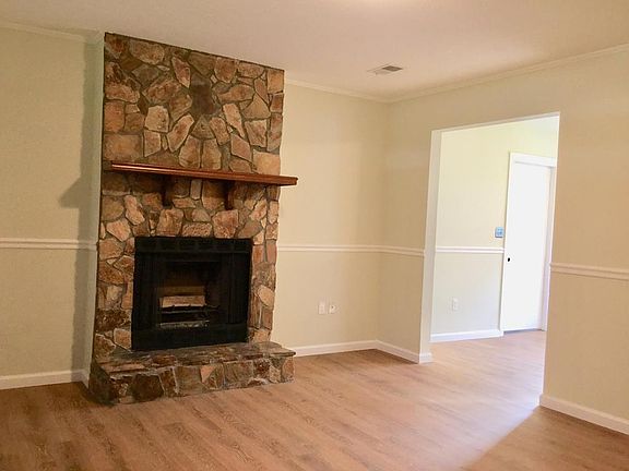 Updated three bedroom, two bath all-brick ranch near Fort Gordon. Home has been freshly painted. Vinyl plank flooring throughout except for baths. Stone fireplace with raised hearth in living room. Eat-in kitchen with refrigerator, stove and dishwasher. Both bathrooms have been remodeled with new sinks, toilets, ceramic tile floors and tile around tub surround. Chair rail in living room and kitchen. New oil-rubbed bronze hardware. Washer and dryer hookups in attached garage. Parking pad in addition to garage. All of this on a lot almost half an acre, with a wooded, private backyard. Perfect for first-time home buyers or investor.