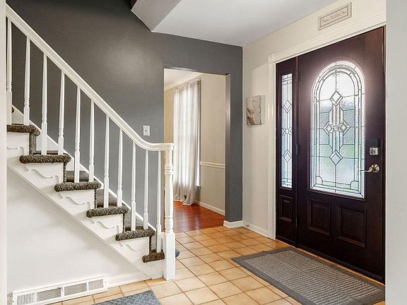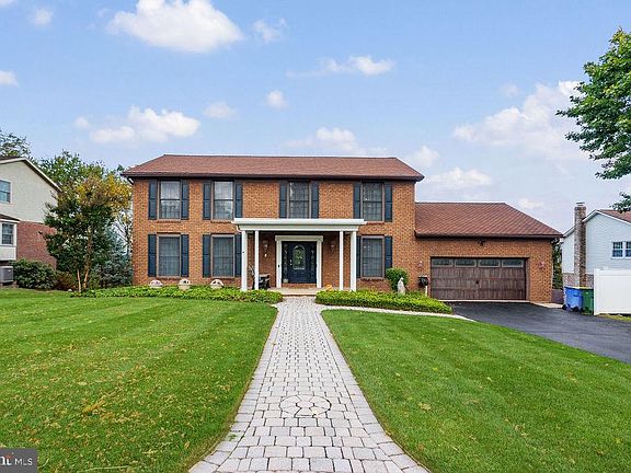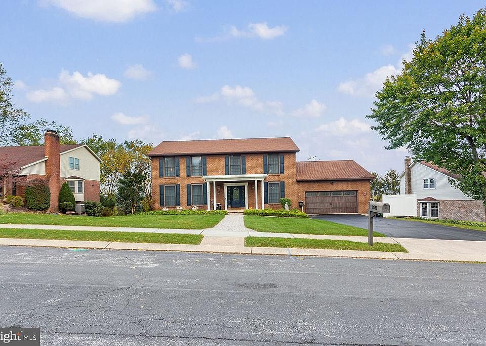 Classic Penn Oaks South two story home with five bedrooms and nearly 4000 sq ft. Recently installed nearly 450 sq ft composite deck off family room with steps to patio and yard below. Portion of deck has roof with skylights. Large concrete patio below off basement family room. Vinyl fencing for portion of rear yard. First floor features living room and formal dining room with teak flooring. Breakfast bar in kitchen and first floor laundry. Solid surface counter tops. Brick fireplace and indirect lighting in family room. Four large bedrooms upstairs plus primary bedroom has sitting area w/skylight, vanity and walk in closet. Additional attic storage behind walk in closet. Lower level is a walkout to a concrete patio with an exercise room and half bath. Modern HVAC systems and radon mitigation system. Home shows pride of ownership.