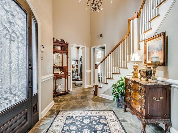 English Tudor home situated on over 3 acres & backs up to a creek. Formal dining just off the entry. Step down to the large family room with fireplace. Dual staircases for easy access to the entire house. Oversized kitchen with picturesque views of the backyard features hand scraped hardwood floors, double built-in subzero fridge with freezer drawer, coffee bar with second sink & oversized island perfect for entertaining. French doors open into the paneled ceiling dining & guest room with full bath. 2nd floor has 5 bedrooms & 3 full baths. 3rd floor is a large game room, media or exercise space. Oversized covered patio overlooks the pool, land, barn & a cabana. The barn is 6 stalls, tack room & wash stall.