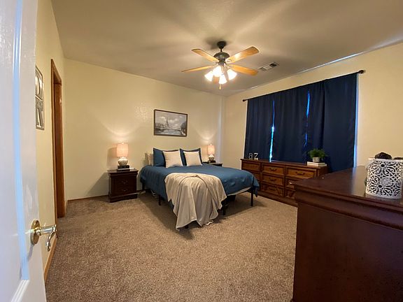 This beautiful two-story home in Southern Hills offers five bedrooms plus a small bonus office with a desk in the garage. This home is a four-bedroom with two living areas or a five-bedroom home, depending on what you need. The kitchen comes with updated stainless steel appliances and a spacious pantry. This home offers a formal dining room, breakfast nook in the kitchen, lots of natural light, master bedroom downstairs, storm shelter, and patio with privacy fenced back yard. Updated paint & carpet