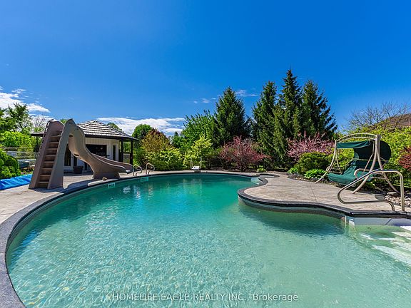 An Unparalleled Custom-Built Masterpiece Offering Over 7,380 Sq. Ft. Of Refined Luxury! Situated On A Premium 94 x 504 Ft Lot (1.08 Acres), This Grand Estate Makes An Unforgettable Impression With A Double-Height Foyer, Sweeping Dual Staircase, And Open-Air Cut-Through Wall That Fills The Space With Natural Light. Featuring 5+2 Bedrooms, 5 Bathrooms, Main Floor Guest Suite & Office, 9 Ft Ceilings On All Levels, 6 Inch Wide Barwood Hardwood Flooring, And Crown Moulding Throughout The Main And Upper Floors. The Breathtaking Family Room Boasts A 19 Ft Vaulted Ceiling And Oversized Arched Windows Framing Stunning Green Space Views. The Chefs Kitchen Is The Heart Of The Home, Showcasing Timeless White Cabinetry, Quartz Centre Island & Counters, And Top-Of-The-Line Appliances. A Bright Breakfast Area With Panoramic Windows And French Door Walkout Makes Indoor-Outdoor Living Effortless. The Primary Suite Offers A Tray Ceiling, Custom Walk-In Closet, And Spa-Like 5-Piece Ensuite With Double Sinks, Freestanding Tub, And Frameless Glass Shower. The Finished Basement Features A Massive Rec Room With Wet Bar, Additional Bedroom, Gym, 3-Piece Bath, Storage Room, And Cold Cellar. Step Into Your Private Backyard Oasis: A 1,000 Sq. Ft. Trex Deck, 26x40 Ft Heated Saltwater Pool With Pool Bar, And A 7x7 Ft Hot Tub In An Insulated Shed, All Surrounded By Lush Landscaping. Finished With A 3.5-Car Garage And An Extended Paved Driveway With Parking For 10, This Home Seamlessly Combines Luxury, Function, And Grand-Scale Entertaining.