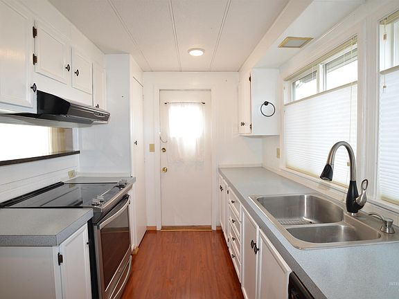 Welcome to this charming 2-bedroom, 1-bathroom manufactured home nestled in the Lewiston Orchards. This inviting residence features a well-equipped kitchen with updated appliances. This property has been well cared for and has a new furnace, newer roof, window coverings, and a beautiful updated bathroom. The spacious living room boasts several windows, filling the area with natural light and creating a warm, welcoming atmosphere. Step outside to discover two handy storage sheds, providing ample space for your belongings, along with an attached storage room off the front porch. The monthly space rent is $600 two pets under 40 pounds are allowed (subject to park approval). All the appliances are included even the washer and dryer. Don’t miss the chance to make this lovely manufactured home your own. Schedule your showing today!