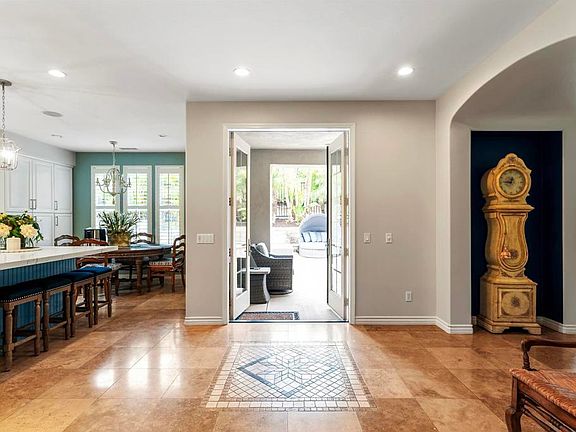Nestled in the prestigious La Costa Oaks community, 3526 Camino Cereza presents an exquisite fusion of luxury, comfort, and functionality. This stunning residence is located in one of the area's most sought-after neighborhoods, celebrated for its tree-lined streets, premier amenities, and access to the esteemed Encinitas/San Dieguito School District. Upon entry, a refined office/TV room just off the front door sets the tone for the home’s thoughtfully designed floor plan. The main level showcases elegant travertine floors and a beautifully renovated kitchen featuring a spacious center island, ideal for culinary enthusiasts. High-end Thermador and Bosch appliances, including a 6-burner stove with a warming drawer, elevate the kitchen’s sophistication. The formal dining room, seamlessly connected to a charming courtyard with a tranquil fountain, creates an inviting atmosphere for entertaining. The adjacent family room, complete with a cozy fireplace, crown molding, and recessed lighting, serves as a warm and welcoming gathering space. A private guest suite located on the first floor with a separate entrance and full bath provides an ideal in-law retreat. The tandem 3-car garage features epoxy flooring and abundant overhead storage. Upstairs, the primary bedroom is complemented by two additional well-appointed bedrooms, including a Jack and Jill suite with a shared full bath. The luxurious upstairs primary suite boasts an expansive bathroom with dual vanities, a separate shower, a jacuzzi tub, a private toilet area, and a generous walk-in closet with built-in storage and natural light. A private balcony off the primary suite offers a peaceful outdoor retreat. The conveniently located upstairs laundry room includes additional storage and a sink for enhanced functionality. Designed for both relaxation and entertaining, the backyard is a true oasis, featuring a sparkling pool, rejuvenating jacuzzi, an outdoor fireplace, and an outdoor TV for ultimate entertainment. A built-in BBQ with a sink and outdoor fridge ensures effortless hosting. The professionally landscaped yard is adorned with mature fruit trees, including a Meyer lemon and a tangelo tree. For added peace of mind, a pool safety fence is available. The home is equipped with two AC units, heating, a newer tankless water heater, and fully paid-for solar, ensuring year-round comfort and energy efficiency. Residents of La Costa Oaks enjoy exclusive resort-style amenities, including a private clubhouse, lap pool, children’s pool, fully equipped gym, parks, and scenic walking trails. The home is also ideally situated near premier shopping, world-class golf courses, parks, pristine beaches, and award-winning schools, making it an exceptional place to call home. Meticulously maintained, the home’s exterior was repainted just three years ago, and plantation shutters, integrated speakers, and custom lighting throughout enhance its charm and sophistication. With unparalleled upgrades, an unbeatable location, and resort-style amenities, this exceptional residence offers an elevated lifestyle of luxury and convenience.