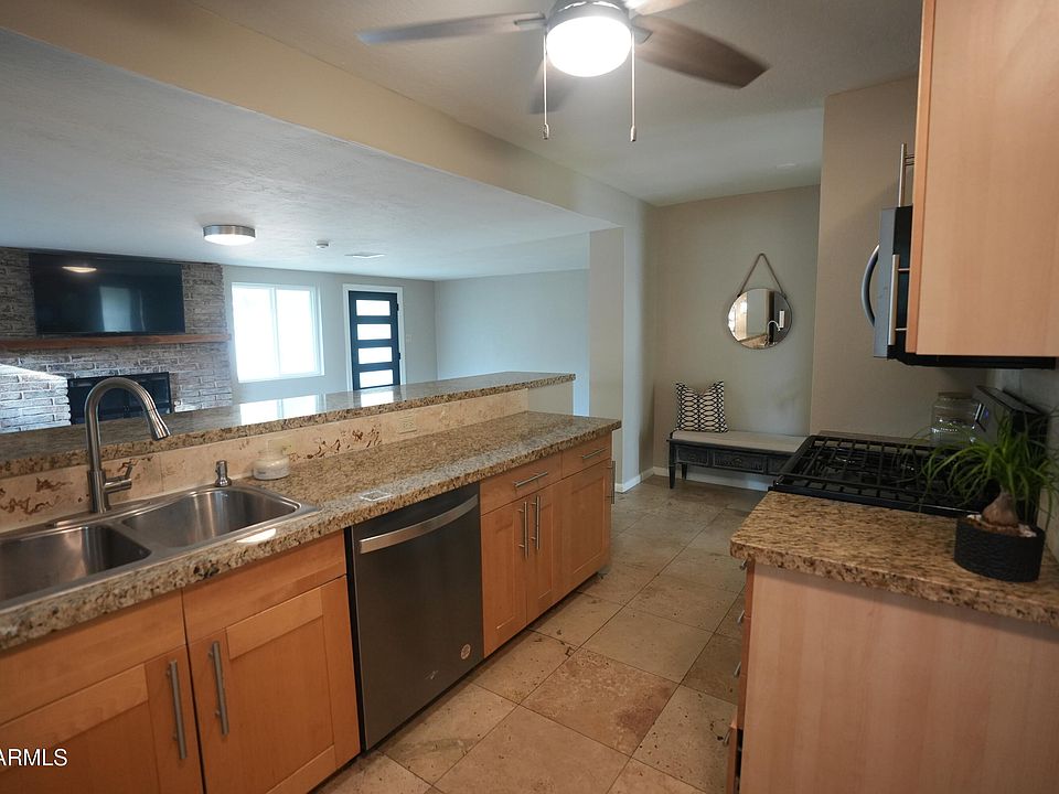 SPACIOUS 4 BEDROOM block home in ARCADIA LITE UNDER $700K! Updated kitchen w/slab GRANITE counters, big breakfast bar, GAS cooking & NEW STAINLESS appliances in 2023* 2 NEW A/C units in 2022* NEW roof 2017* NEW plumbing 2017* Exterior pipes lined in 2021* New DUAL-PANE windows in 2022* NEW water heater 2023* 'SMART home' includes remotely programmable thermostats, outdoor cameras & doorbell camera* Modern front & back doors, newer hardware, keyless entry* Wood-burning FIREPLACE* Primary bdrm w/2 closets & door to yard* 2nd bdrm has custom closet w/built-ins* 3rd bdrm w/lit fan* 4th bdrm/ofc had wall removed, open to laundry rm* NO CARPET* On charming CUL-DE-SAC street w/IRRIGATED yards & fruit trees: CLEMENTINE, LEMON, POMEGRANATE, MULBERRY & ORNAMENTAL PLUM* +Dog/chicken/tortoise run!