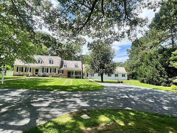 Welcome to  "Hampden," an exceptional estate located on picturesque La Trappe Creek. This remarkable property is a testament to architectural history. The main house envelopes the original structure, which dates to 1663 (now a charming den) with additions spanning the 300+ years since. The present owner meticulously renovated the entire house in 2018 including restoring the structural integrity, wiring, HVAC systems, and the addition of kitchen/mud room and primary bedroom wings.     The formal entrance is flanked by two large rooms, exquisite woodworking detail, and original yet pristine wood floors.  The front hall leads to an elegant sunroom.  From here, take in the view towards the water and the majestic specimen trees which create breathtaking shadows across the rolling lawn at sunset, and a magical park-like setting when the landscape lighting illuminates them at night.   The recently added first-floor primary suite is quietly removed from the rest of the house and a sanctuary unto itself including its own sitting room with fireplace, wet bar, and his/her bathrooms with heated floors each with its own walk-in closet.    The brand new kitchen addition is a culinary masterpiece that will delight even the most discerning chef, boasting top-notch Sub Zero and Wolfe appliances, including a steam oven and a space for a large wine cooler or extra refrigerator.  Just off the kitchen is the quintessential Eastern Shore Mud Room, with plenty of counter space and storage: perfect for flower arranging, coat and boot storage and, of course, muddy dogs.     The pool has a charming pool house with two changing rooms and a summer kitchen.  The multi-slip dock is deep water (5’ at mean low tide) and powered to host large boats.   For guests, there is a charming accessory building with two bedrooms and a bath. Other buildings include an office or studio with a full bath, perfect for remote work, a fitness center, and a media room or studio (fabulous southern exposure and lighting). There is also a 2-car garage and separate 2-bay shop/garage offering ample space for storage and hobbies.   The farm consists of two parcels: the house parcel of 16 acres+/- consists of the improvements with the additional 8 acres +/- that is deed restricted with a Conservation Easement held by Eastern Shore Land Conservancy to preserve the conservation attributes of the property.  Private recreational activity, agricultural use, and accessories supporting agriculture are permitted. Currently under cultivation, the point parcel has hundreds of feet of waterfront and provides a host of opportunities for habitat restoration, pasture, woodland restoration, or the addition of a fresh-water pond.  This is a unique opportunity to indulge in your passion for the great outdoors.   Equidistant to Easton, Oxford, and Cambridge, the location couldn’t be more convenient. Don't miss the chance to see this truly exceptional property that seamlessly blends history, luxury, and privacy. Whether you are seeking a peaceful retreat or a place to entertain in style, "Hampden" is the embodiment of refined living. Truly a bucolic and private oasis.
