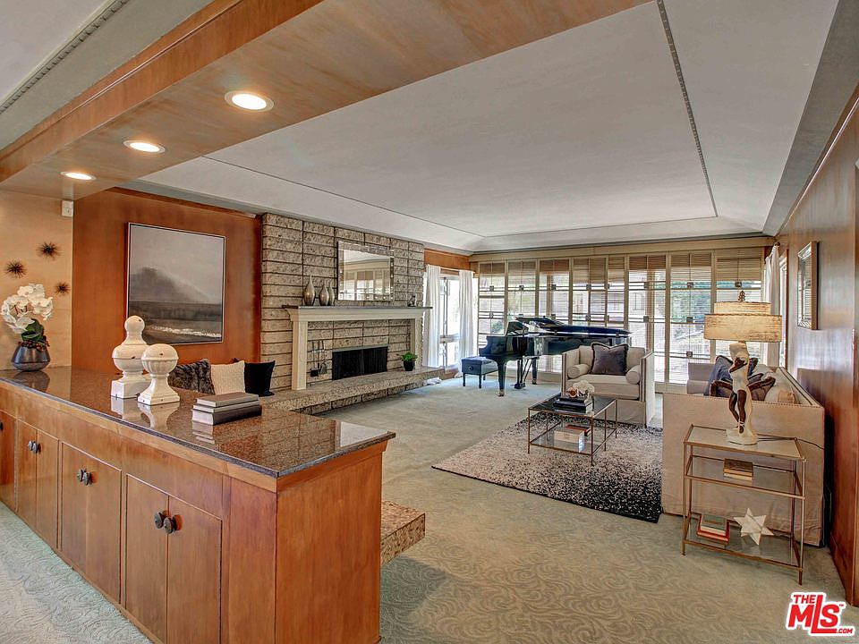 Here is what you've been waiting for in Los Feliz: Golden Age Hollywood/Mid Century Charmer. Front door leads you to the entry way with rare tiger oak paneling, spacious living room with cozy fire place, open floor plan with dining room filled with sun light. Across from the entry way is a great study room, or happy hour with wet bar. Original mid century 2 bathrooms, 2 bedrooms. Built in drawers & cabinets for storage through out. Very charming kitchen open to dining room, large pantry,. Wake up & enjoy breakfast on the terrace deck off the kitchen with fabulous views. Downstairs have 2 bedrooms, bathroom & a huge entertainment room, step down from sliding door to the saltwater pool: the backyard is a tropical setting, At night the backyard comes to life with colored lights changing the pool, gas tiki torches glowing in the sky. Outdoor decking & seating, below deck: a music or a gym room. You truly feel like you are on vacation, living in this quiet paradise home!