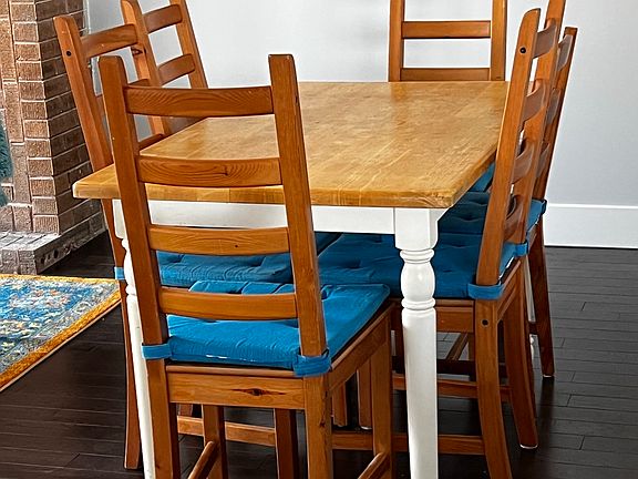 NOTE that the photos do not show the current furnishings as I've had tenants leaving and moving in the same day and haven't had an opportunity to take new ones. There's now a larger dining room table that seats 6 + expands, and an L-shaped sofa along with the 2 chairs.