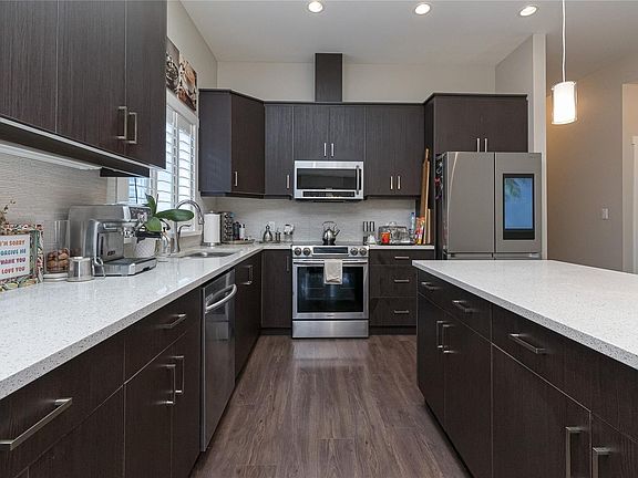 Welcome to this beautifully maintained 3-bedroom, 2-bath rancher — a rare find offering over 1,700 sq. ft. of stylish one-level living. The bright open-concept layout showcases a stunning kitchen with quartz countertops, large island & stainless steel appliances—perfect for entertaining. The spacious living room with cozy gas fireplace opens through French doors to a sunny, south-facing patio & private backyard with a beautiful pergola, mature landscaping & plenty of space for gardening, pets, or outdoor gatherings. The generous primary suite offers an electric fireplace, walk-in closet & spa-inspired 5-piece ensuite. Two additional bedrooms & a dedicated laundry room add comfort & flexibility. Additional highlights include high-end California shutters, hot water on demand, heated double car garage & plenty of parking. Ideally located in a newer, family-friendly neighbourhood just steps to the Galloping Goose Trail & minutes to Red Barn Market, schools & Olympic View Golf Course.
