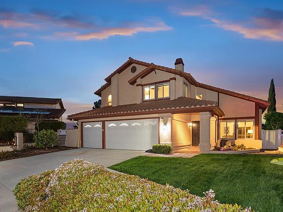 This beautifully updated 4-bedroom, 2.5-bath, 2,306 sq ft home truly has it all—3-car garage, private pool and spa, built-in BBQ, panoramic mountain views, and thoughtful upgrades throughout! Vaulted ceilings at the entry create a bright and welcoming atmosphere. The home offers both a formal living room and a comfortable family room, providing great flexibility for everyday living and entertaining. The remodeled kitchen opens to the family room and sits conveniently next to the dining area for easy flow. A custom beverage station adds both style and function. Downstairs also features a separate laundry room and an upgraded half bath. Upstairs, you’ll find all four bedrooms, including a spacious primary suite with a cozy sitting area and fireplace. The fully remodeled en-suite bathroom boasts a walk-in closet and a luxurious feel. A second full bathroom in the hallway has also been beautifully updated. Step outside to your private backyard and take in the stunning mountain views. Enjoy the grassy area, built-in BBQ, and flat concrete patio—perfect for a relaxing sitting area. The in-ground pool and above-ground spa complete this peaceful outdoor retreat. Perched on a hill for added privacy and picture-perfect views, this home also includes solar through Sunrun and is ideally located close to shops, restaurants, and freeway access.