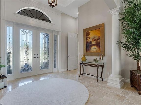 Experience true waterfront luxury at 3526 SE 19th Avenue, a stunning, custom-built masterpiece by Gargiula Construction offering the perfect balance of timeless elegance, comfort, and Gulf access living. Showcasing superior craftsmanship throughout, this home exemplifies exceptional quality and attention to detail that set it apart from the rest. Tucked away at the end of a peaceful cul-de-sac, this 4-bedroom, 3-bath, 3-car garage residence showcases refined craftsmanship and premium finishes throughout. Step inside to discover travertine flooring, custom wood ceilings, custom woodwork, and solid core interior doors, all contributing to the home’s warm, luxurious feel. The open-concept layout is designed to highlight the home’s stunning intersecting wide canal views. The gourmet kitchen impresses with custom cabinetry including 42" uppers, a large island, granite countertops and backsplash, walk-in pantry, wine refrigerator, built-in wall ovens, and upgraded stainless steel appliances—ideal for both entertaining and everyday living. Enjoy the ultimate Southwest Florida lifestyle outdoors with a private heated pool surrounded by a travertine pool deck, and a fully screened enclosure all overlooking wide canals that lead directly to the Gulf—no bridges, no limits. The 10,000-pound boat lift and wrap-around composite dock provide quick and easy boating access. Built for strength, comfort, and security, the custom-built home features a higher elevation, impact windows and doors, motorized Storm Smart impact screens that fully protect the covered lanai at the touch of a button, and peace of mind knowing this property has NEVER FLOODED. Every detail of this residence reflects thoughtful design, timeless materials, and the highest quality of construction. This home stands out from others in the area with its superior CRAFTSMANSHIP, showcasing exceptional attention to detail and quality rarely found in comparable properties. Whether hosting guests or relaxing poolside as boats pass by, this home offers the pinnacle of Cape Coral waterfront living in one of the Cape's most sought after locations.