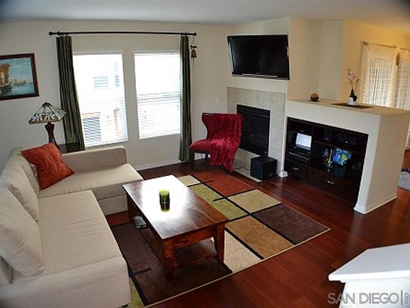 Great location in Pt. Loma in By the Bay Complex just off Midway. 2bed/2.5 Bath 1,386sq ft corner unit Townhouse w/direct access attach 2 car tandem garage. Corner unit has additional windows providing great natural light in the unit. Hardwood floors, granite counters in kitchen, balcony off of dining area, fireplace in living room. Laundry room off kitchen with washer/dryer included. Complex features gated complex, pool, rec room, playground. Great walkability to shops, restaurants, & public transit.