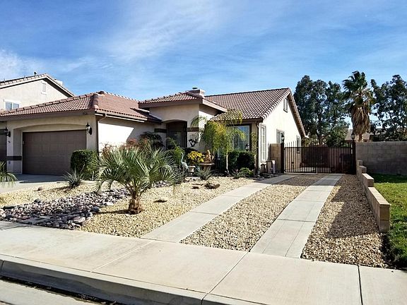 COME LIVE IN THIS CHARMING TRADITIONAL STYLE SINGLE STORY FAMILY HOME that has RV Access, 3 car garage, tool shed, and an above average size lot. Very desirable area & located near shops, parks, and schools for all ages. Upgrades include granite counter tops, hard wood floors, crown molding, stainless steel appliances & sink, new carpet, custom paint, evap cooler. Master bdrm has walk in closet, his/her sinks and separate tub/shower. Front yard compliments the neighborhood with the desertscape design, and the backyard is like paradise with lots of greenery,trees, a pond and nice curbing to top it off! A home is not complete without a fireplace which is the family rooms focal point. Kitchen and family dining area are open to the family room creating a comfortable