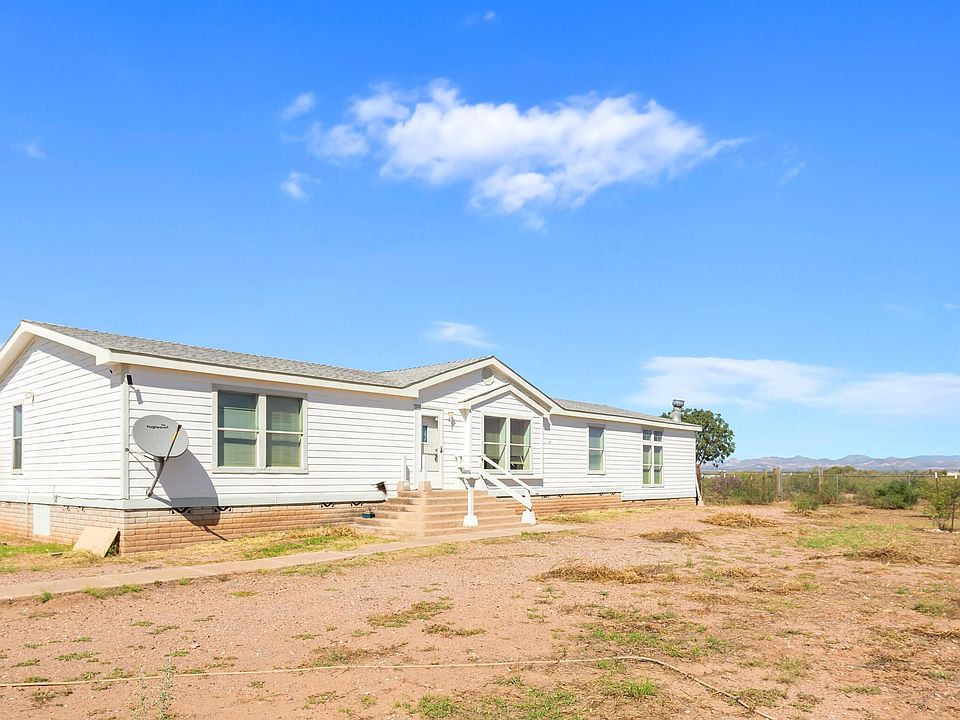 Move in to your lovely 10 acre homestead in Cochise County! This home has been lovingly maintained by the original owner. Fully fenced yard close to the house, in addition to fully fenced perimeter. Enjoy the front living room with company. There is also a HUGE second living room to use as your own personal retreat. The woodburning fireplace will keep you cozy in winter months. Split floorplan has Owner's Suite on one side of the home for privacy, with additional bedrooms on opposite side. Brand new AC will keep you cool in the hotter months! Private well is a bonus with NO well-share. Large detached garage may also be used as a workshop. Less than a half mile from a paved road. Enjoy Arizona's famous sunsets, along with mountain views in almost every direction you face.