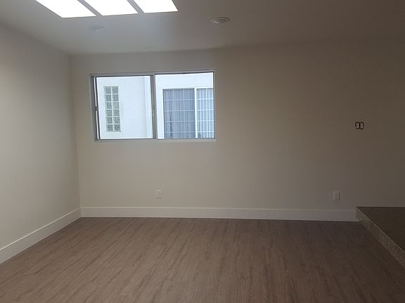 Designer done top floor front facing unit. Vaulted ceilings with LED lighting, a huge skylight and wood floors. Brand new kitchen with stainless steel appliances, granite counters and tons of storage. Private bedroom also with vaulted ceilings, a huge closet and extra storage. New modern bathroom with custom tiling and huge shower. Central heat & air. One parking space available for $150 per month and laundry on site. Excellent location a block from the Expo stop at Palms and walking distance to downtown Culver City. One year lease, tenant pays all utilities, one parking space available for $150 per month