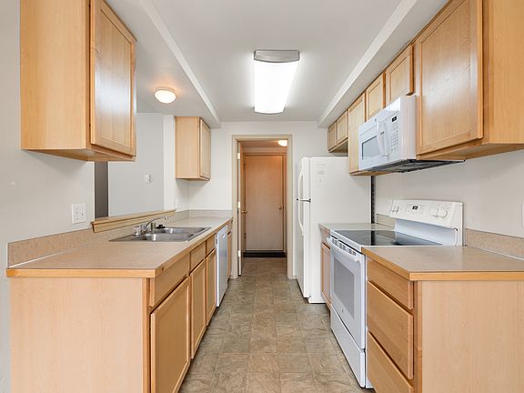 The kitchen comes fully loaded with all appliances and has a fair amount of counter space and cabinetry.