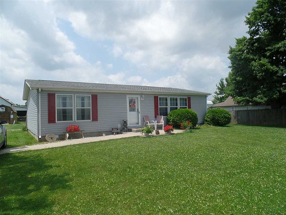 Nicely landscaped home on .454 acres close to Solsberry. Adorable home with open living room/dining room/kitchen area, 2 bedrooms, 2 full baths - master bath with garden tub & separate shower. Sliding doors off kitchen to covered patio, back patio off of utility/mud room. Storage shed.