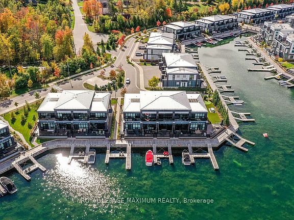Rare 4-Bedroom Waterfront Retreat in Friday Harbour Resort! Welcome to this customized and uniquely designed marina townhome located in the prestigious Friday Harbour Resort. This exceptional property features a rare 4-bedroom layout on the second floor, thoughtfully divided into two private wings- each with 2 bedrooms and a full bathroom, creating the perfect setup for two families or multi-generational living. Ideally situated directly across from the Beach Club and just steps from the lake, this home offers the ultimate in convenience and lifestyle. The main floor boasts soaring 10-ft ceilings, elegant black cabinetry, stainless steel appliances, and a massive centre island-ideal for gathering and entertaining. The open-concept living and dining areas offer breathtaking lake views and flow seamlessly onto a private, spacious deck-just steps from your own exclusive boat slip. Upstairs, the primary bedroom features a walk-out to a wide balcony, the perfect spot to enjoy a peaceful morning coffee with panoramic water views. The 2-car garage is equipped with epoxy floors, slat walls for added organization, and even includes a second fridge. Recently operated as a successful Airbnb rental, this turn-key opportunity can continue seamlessly, as the property is available fully furnished. Whether you're seeking an income-generating investment or a personal waterfront retreat, this home offers the best of both worlds-generate revenue while keeping it available for your own enjoyment whenever desired. Enjoy all the world-class amenities Friday Harbour has to offer: a championship golf course, private beach, marina, nature trails, shops, restaurants, a grocery store, and year-round entertainment. This is more than just a home-it's a lifestyle.
