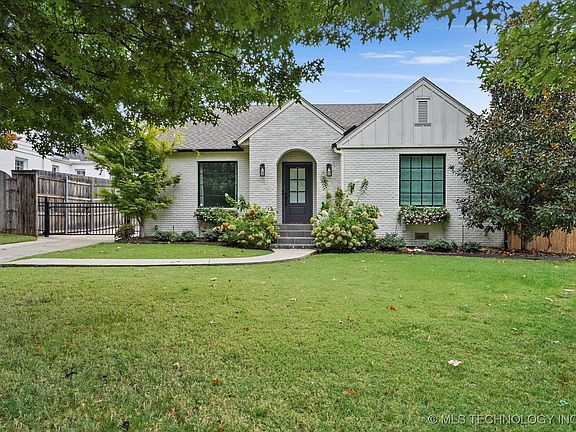 Impeccable Brookside 1 - story Bungalow fully remodeled in 2019 by Rose Rock Properties. Captivating details throughout. 3 bed, 2.5 bath, 2 living open concept/split plan with vaulted ceilings in living room and the primary bedroom. Original white oak wood floors throughout. Kitchen has shiplap ceilings with designer finishes. Quartz countertops, open shelving, subway tile, stainless appliances, Beautiful vaulted primary suite addition with luxurious primary bath w/ rainfall shower and marble floors. Spacious walk-in primary closet. Security gate, professionally landscaped and covered breezeway between house and garage. Location, Location, Location being within walking distance to Brookside and the Gathering Place, quick access to Utica Square, Cherry Street and Downtown. If you are looking Luxury and comfort with the Midtown experience this property is an absolute must see